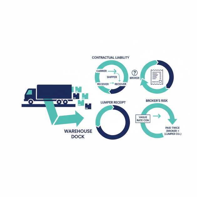 A single unrecovered lumper charge costs you $150 to $400. Twenty of those per month, and a small brokerage bleeds $36,000 to $96,000 per year in margin that never shows up on a P&L report. Lumper charges are among the most commonly disputed accessorial fees in freight, and the reason is simple: nobody agrees on who should pay them. The rate con is silent. The carrier sends an invoice 30 days late. The shipper says it was never their problem. And the broker, sitting in the middle, absorbs the cost because they cannot prove otherwise. According to OTrucking's 2026 guide to lumper fees, lumper fees remain one of the most frustrating accessorial charges in the industry, with costs ranging from $150 to $400 per load. This guide breaks down the contractual liability behind lumper charges, shows you exactly what documentation wins a reimbursement dispute, and gives you rate con language you can copy today.